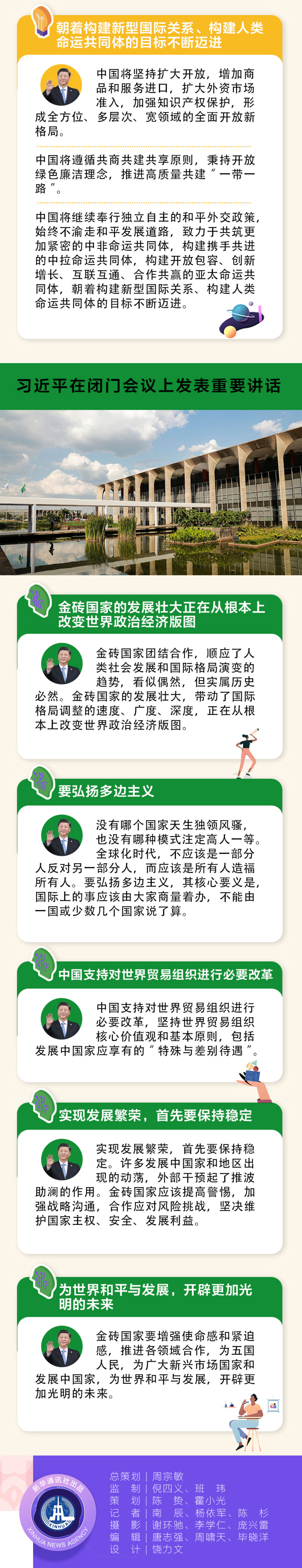 當地時間11月14日,金磚國家領導人第十一次會晤在巴西首都巴西利亞舉行。巴西總統博索納羅主持會晤。中國國家主席習近平、俄羅斯總統普京、印度總理莫迪、南非總統拉馬福薩出席。習近平發表題為《攜手努力共譜合作新篇章》的重要講話。當天,金磚國家領導人還舉行閉門會議,習近平在會上發表重要講話。