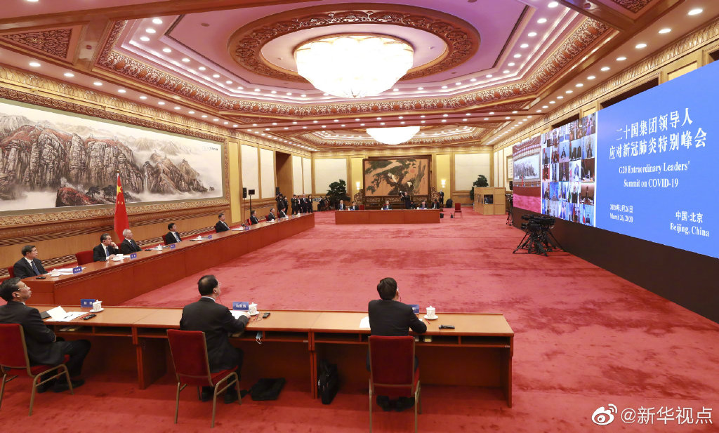 二十國集團(tuán)領(lǐng)導(dǎo)人應(yīng)對新冠肺炎特別峰會開始舉行,中國國家主席習(xí)近平在北京出席。 ?????