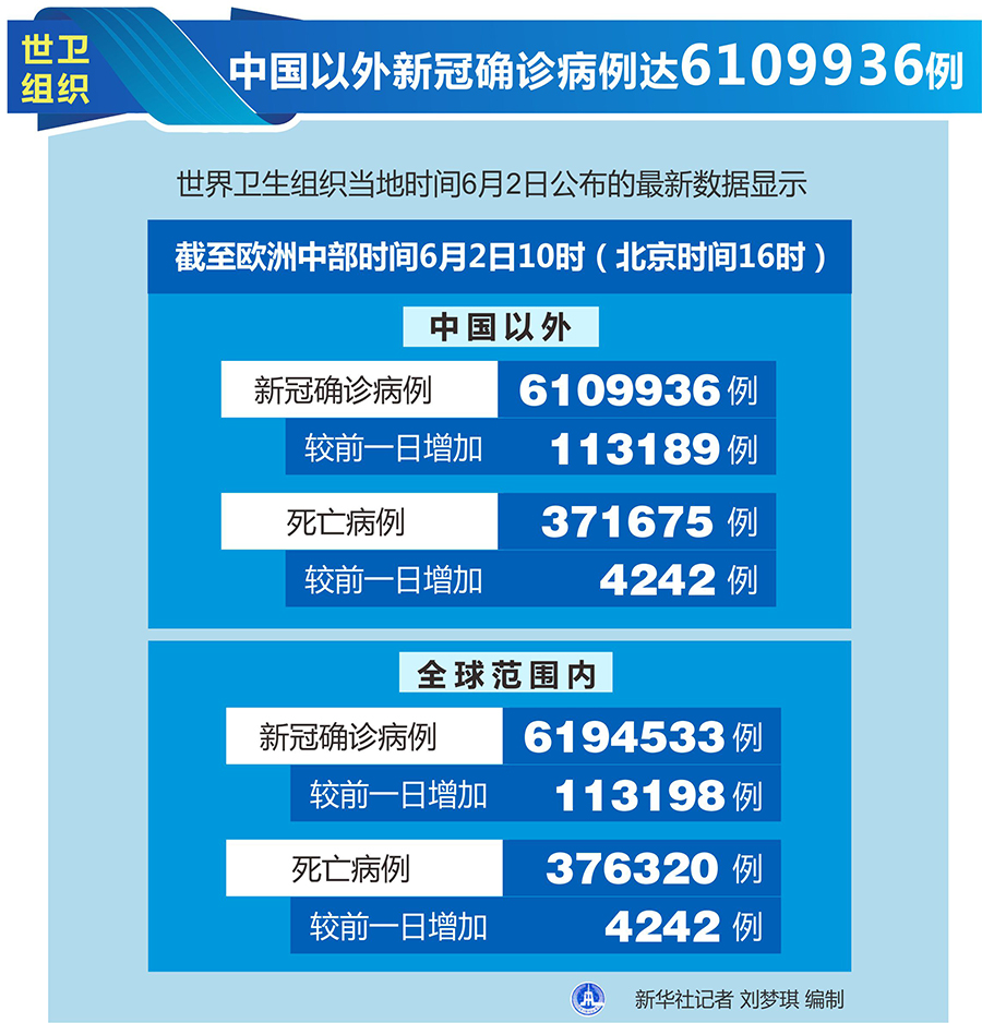 圖表:世衛組織:中國以外新冠確診病例達6109936例 新華社記者 劉夢琪 編制