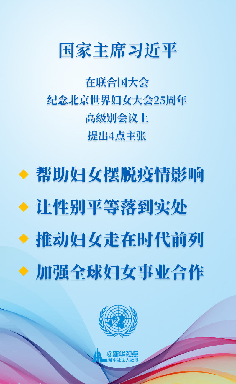 10月1日,聯合國大會紀念北京世界婦女大會25周年高級別會議舉行,習近平主席出席會議并發表講話。