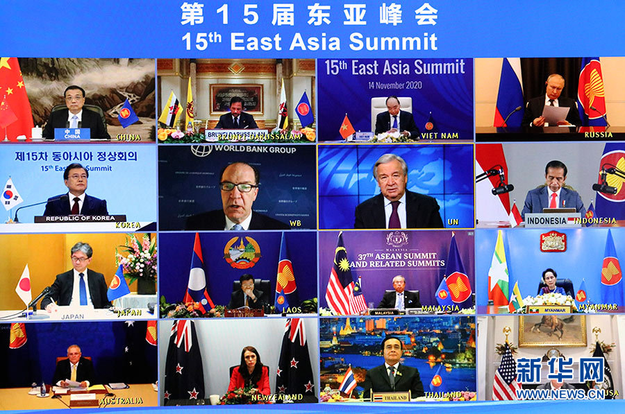 新華社北京11月14日電 國務(wù)院總理李克強(qiáng)14日晚在人民大會堂出席第15屆東亞峰會。東盟十國領(lǐng)導(dǎo)人以及俄羅斯總統(tǒng)普京、韓國總統(tǒng)文在寅、日本首相菅義偉、澳大利亞總理莫里森、新西蘭總理阿德恩、印度外長蘇杰生、美國總統(tǒng)國家安全事務(wù)助理奧布萊恩等與會。越南總理阮春福主持會議。會議以視頻形式舉行。