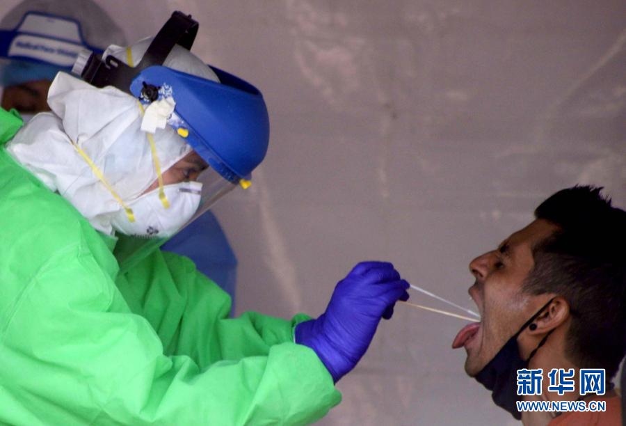 11月14日,在墨西哥首都墨西哥城,醫務人員為一名男子采集檢測樣本。