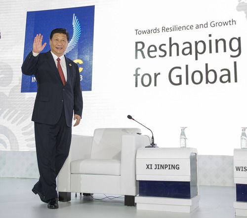 2013年10月7日,國家主席習近平在印度尼西亞巴厘島出席亞太經(jīng)合組織工商領導人峰會,并發(fā)表《深化改革開放共創(chuàng)美好亞太》的重要演講。新華社記者 李學仁 攝