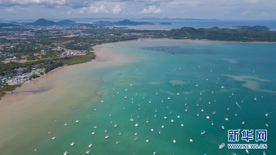 這是2020年9月14日拍攝的??吭谔﹪?guó)普吉島岸邊的游艇(無(wú)人機(jī)照片)。