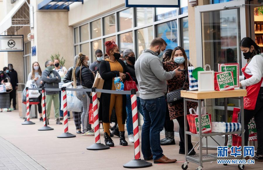 受新冠疫情影響,今年美國“黑色星期五”購物促銷日前往商店購物的人數較往年減少。