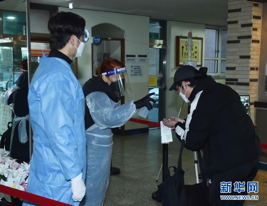 12月3日,在韓國京畿道城南市,一名考生在進入考場前進行手部消毒。受新冠疫情影響,原定于今年11月19日舉行的韓國大學修學能力考試(相當于中國的“高考”)被推遲至12月3日舉行。新華社發(李相浩 攝)