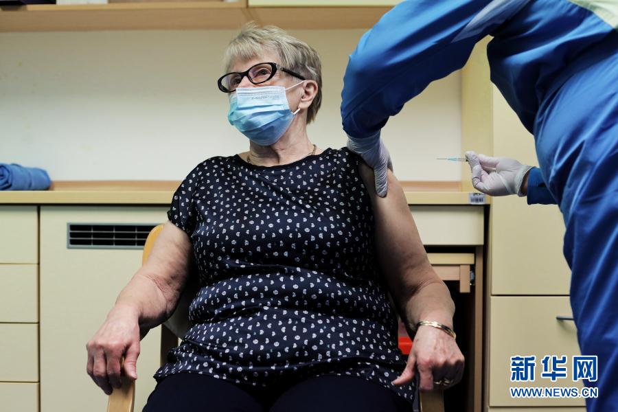 12月27日,在斯洛文尼亞首都盧布爾雅那一家養老院,醫務人員為一名志愿者老人注射新冠疫苗。