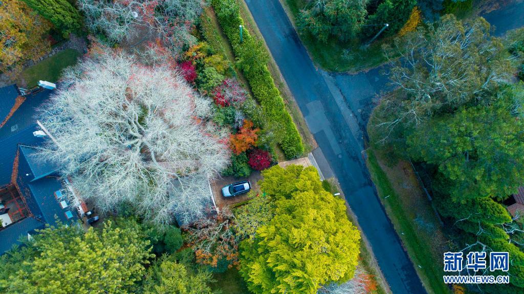 這是5月3日在澳大利亞悉尼西部藍山地區拍攝的多彩的街道(無人機拍攝)。
