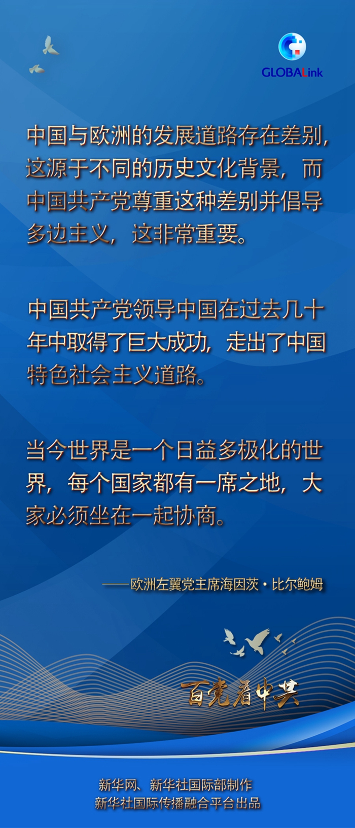 比爾鮑姆說,中國共產黨領導中國在過去幾十年中取得了巨大成功,走出了中國特色社會主義道路。中國擁有深厚的文化積淀,其發展歷程與歐洲有相似之處,也有不同之處。“這是必然的,因為我們的文化背景不同。”