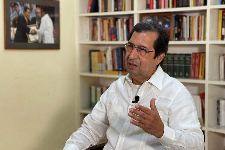 4月1日,委內瑞拉統(tǒng)一社會主義黨副主席、委內瑞拉駐古巴大使阿丹·查韋斯在古巴首都哈瓦那接受采訪。新華社發(fā)(委內瑞拉駐古巴使館供圖)