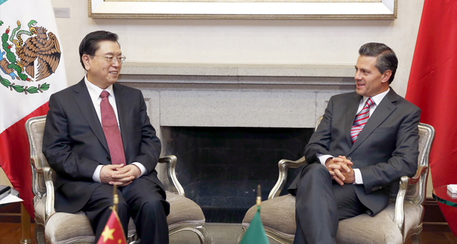 應(yīng)墨西哥參議長(zhǎng)巴爾沃薩和眾議長(zhǎng)奧雷奧萊斯的邀請(qǐng),全國(guó)人大常委會(huì)委員長(zhǎng)張德江25日至26日對(duì)墨西哥進(jìn)行正式友好訪(fǎng)問(wèn),在墨西哥城會(huì)見(jiàn)墨西哥總統(tǒng)培尼亞,與巴爾沃薩和奧雷奧萊斯分別舉行會(huì)談。[詳細(xì)]